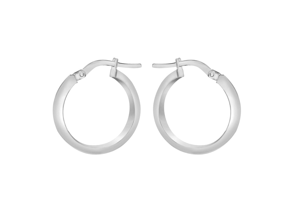9K White Gold Textured Hollow Creole Earrings 9mm