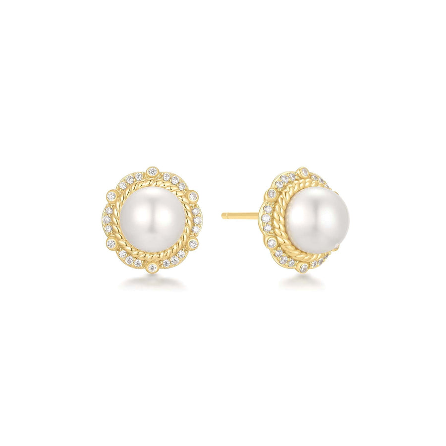 Two-Tone Shell Pearl Bloom Stud Earrings