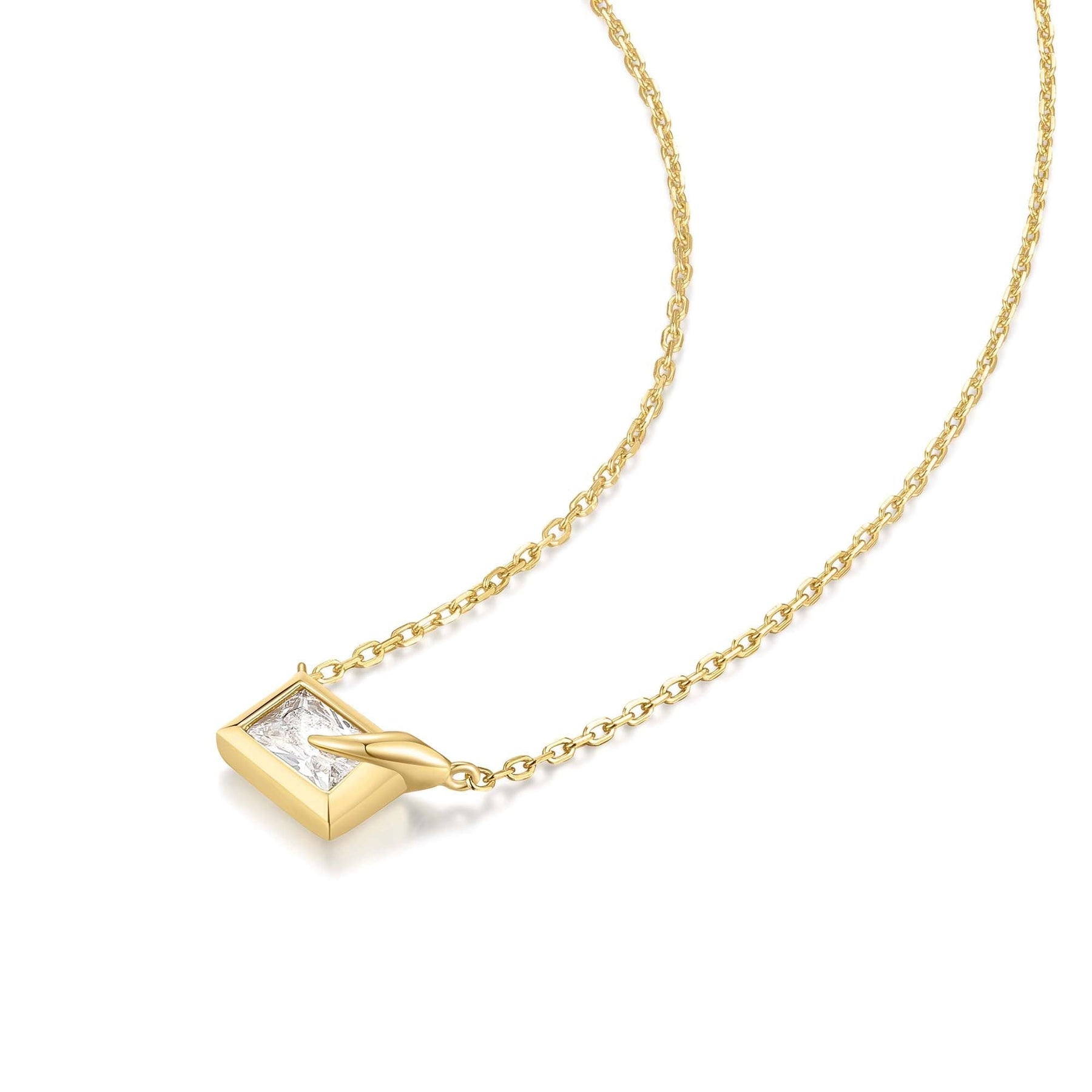 Embrace this season's hottest trend where elegance meets contemporary edge and stand out with this cube necklace. The combination of sparkling cube and a claw setting adds a modern twist, turning heads whether paired with a flowy dress or a tailored suit. Mix and match with other chains for a versatile and eye-catching look.